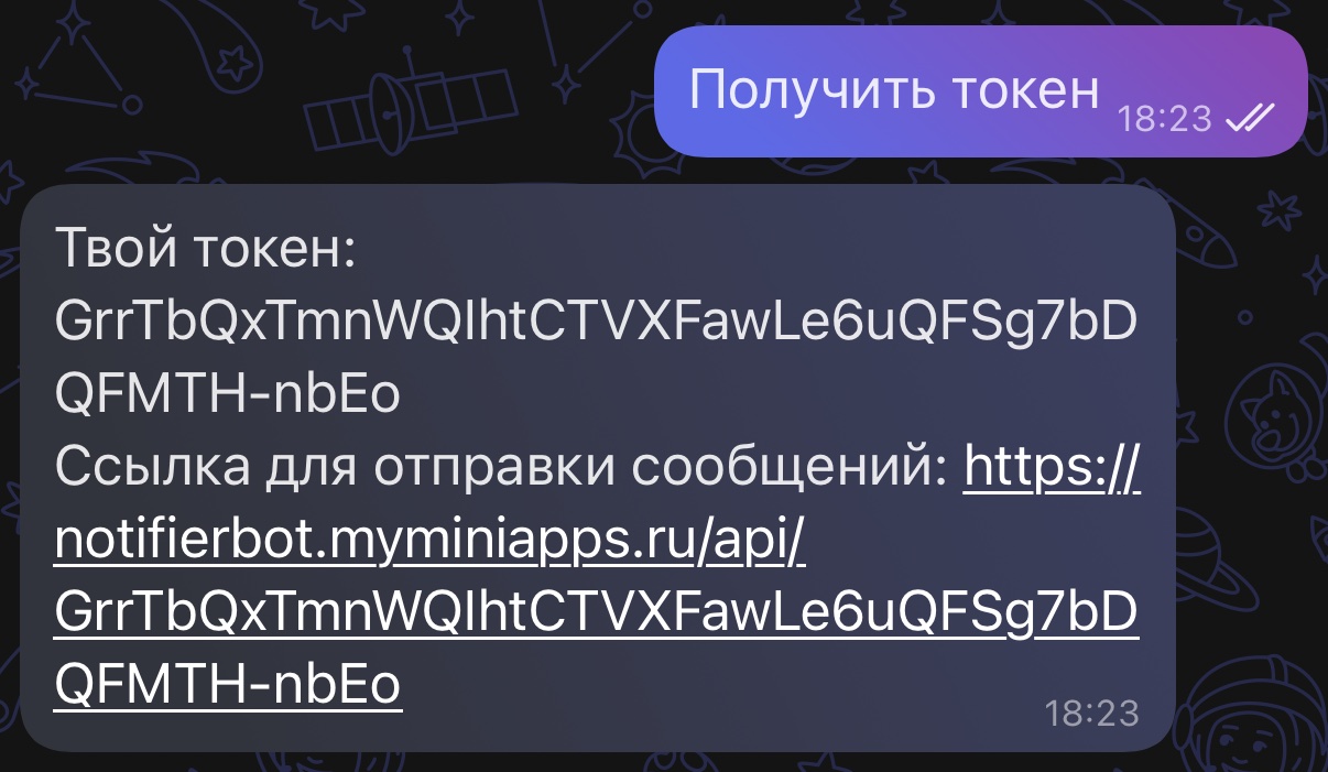2. Напиши боту "Получить токен"